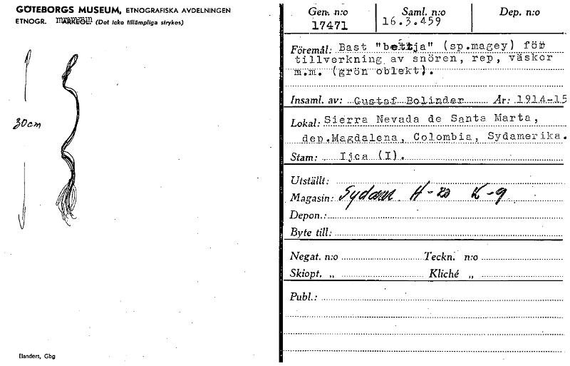 | dc.title.alternative | Bast "bettja" (sp. magey) för tillverkning av snören, resp. väskor, m.m. (grön oblekt). | spa |