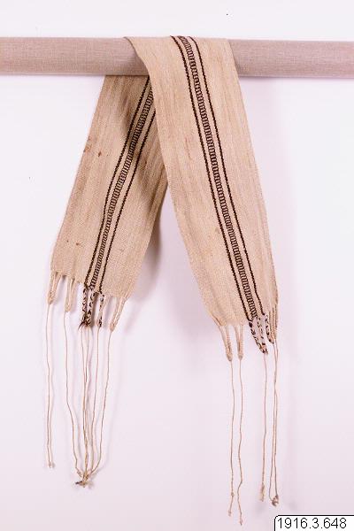 | dc.description.abstract | White belt with three black stripes made for men. It is known as ikʉ into the community. It is used by men who has already a mature state of mind. Before that, men uses a blanket made of fique, cotton or yarn without pants or belt. . (The description showed before is the result of a workshop made with young and old people of arhuaca's community in Simonorwa región, between march 25 and 30 of 2019). | spa |