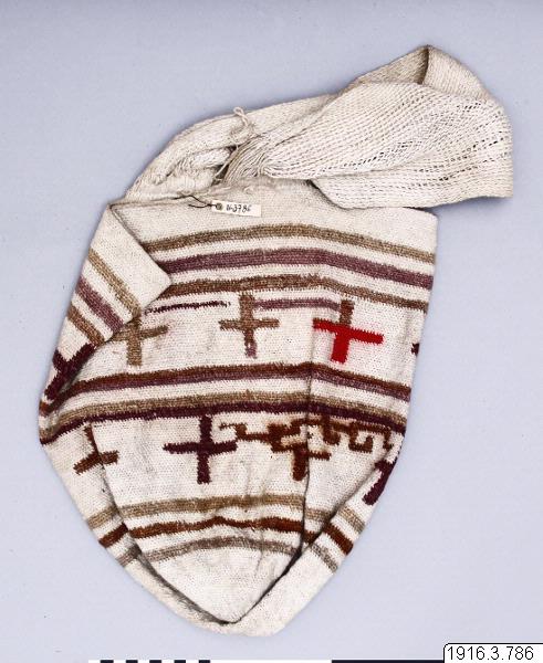 | dc.description | Mochila blanca de algodón con líneas verdes, cafés y negras y con figuras que interpretamos como cruces de diferentes colores. | spa |