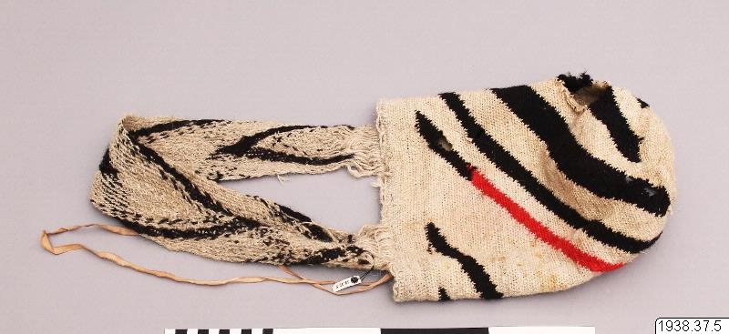 | dc.description | Mochila blanca con varias franjas gruesas de color negro y una franja roja. Sirve para guardar las hojas de coca o ayu. | spa |
