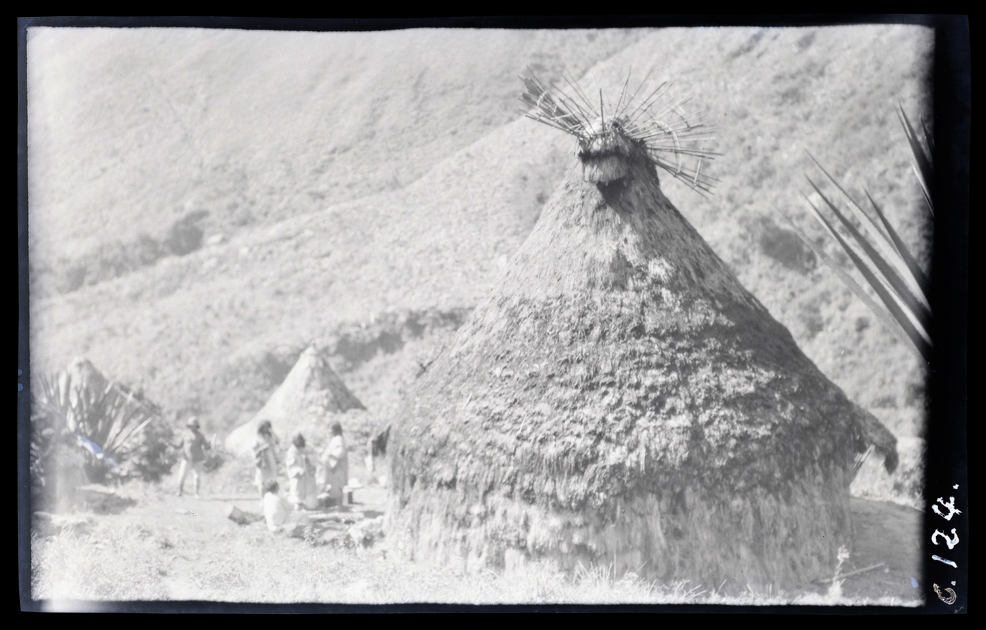 | dc.description | Vista trasera de una casa tradicional indígena - posiblemente kogui- y al fondo varios hombres reunidos. | spa |