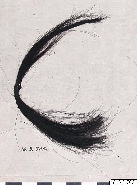 | dc.description.abstract | Tuft of hair, black, 15 cm long. | spa |