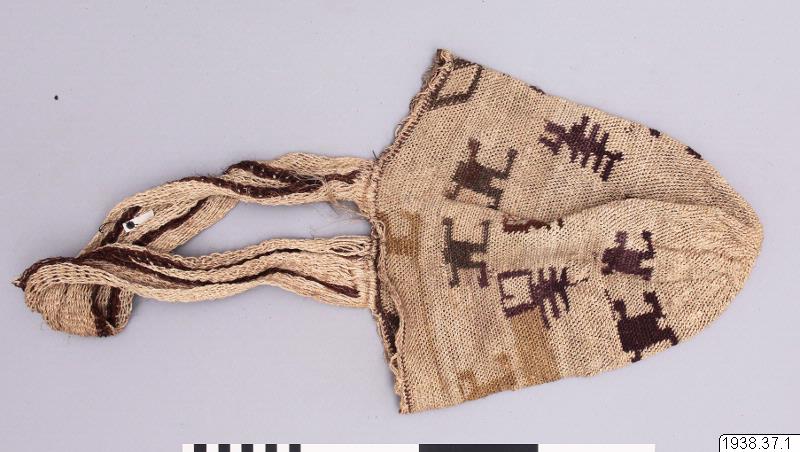 | dc.description | Mochila para las hojas de coca que tiene varias figuras pequeñas con forma de personas cafés y amarillas, además de otras figuras no-humanas. | spa |